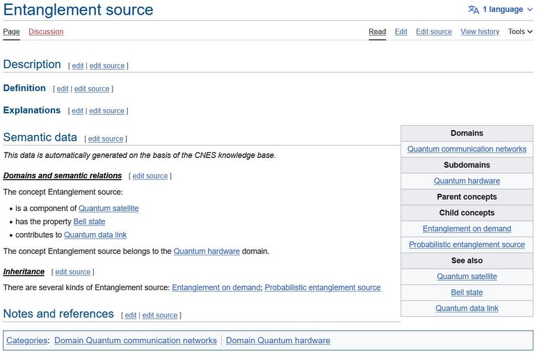 1. 1.0 1.1 The CNES Knowledge Base (or CNES Ontology) is a terminological and semantic database validated by CNES experts and used to model different knowledge domains from a formal point of view.