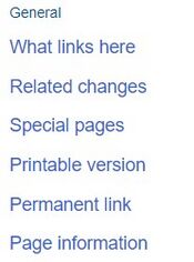 Special pages: set of pages relating to the uses and statistics of the wiki.